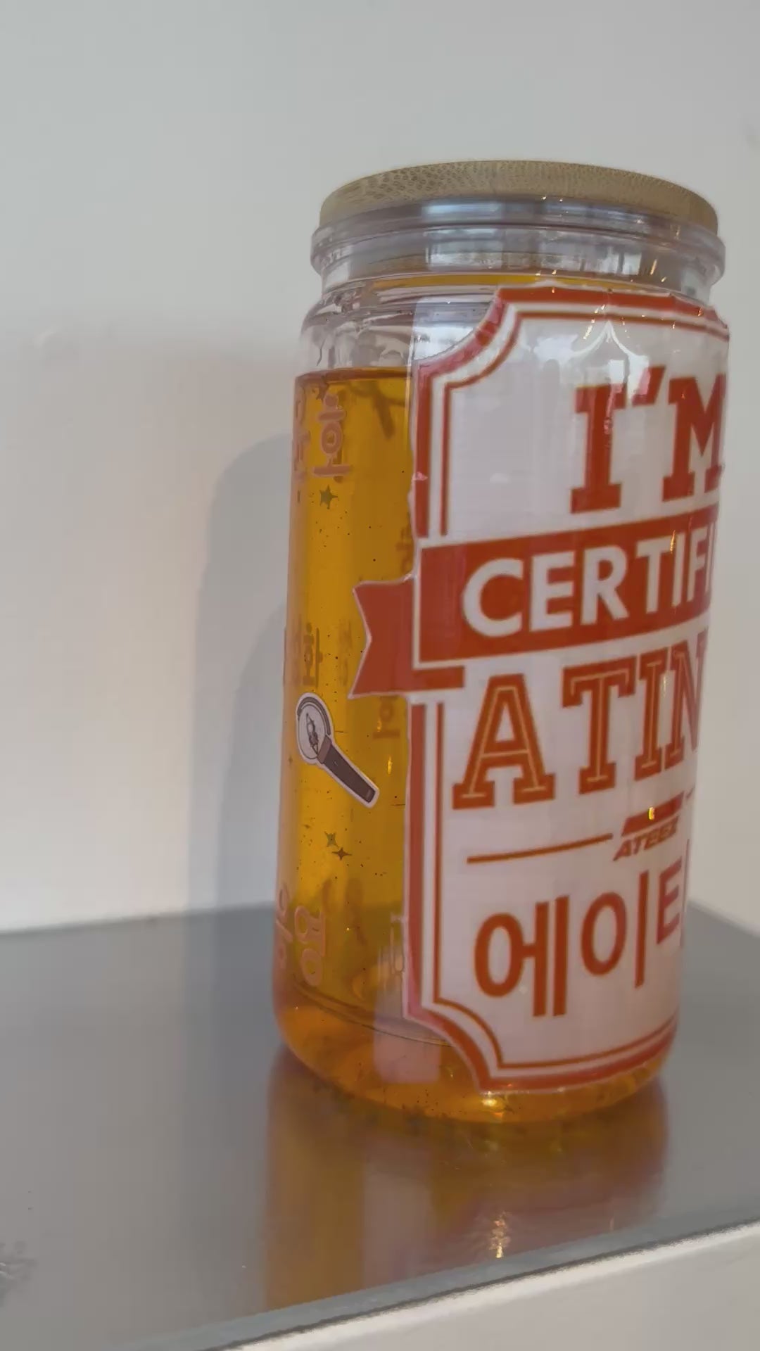 Inspiré par l’énergie scénique du groupe Ateez, ce tumbler en verre reflète puissance, passion et esprit d’équipe.